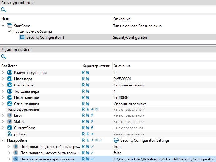 Установить следующий путь к папке для хранения шаблонов приложений: C:\Program Files\AstraRegul\Astra.HMI.SecurityConfigurator.