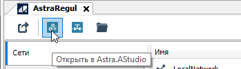 Чтобы открыть конфигуратор Astra.AStudio, нажмите кнопку "Открыть в Astra.AStudio" на панели инструментов AstraRegul в среде разработки Astra.IDE.