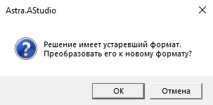 Если Astra.AStudio предложит преобразовать устаревший формат для этого проекта, нажмите "ОК".