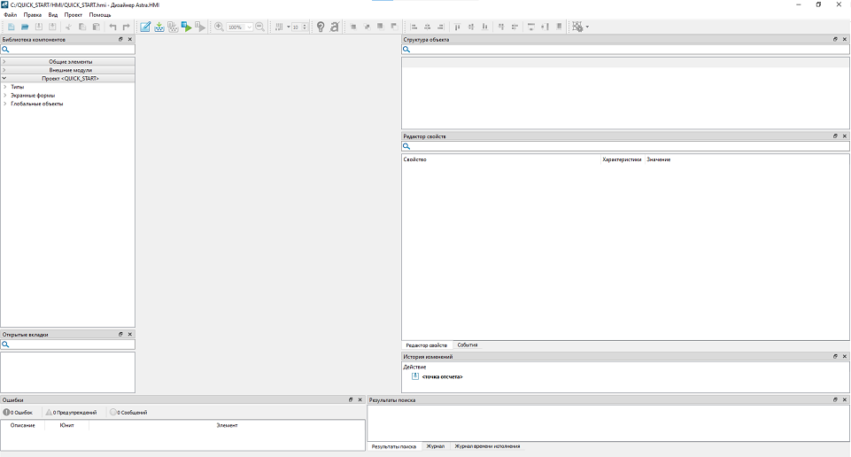 2. В дизайнере Astra.HMI откроется проект "QUICK_START".