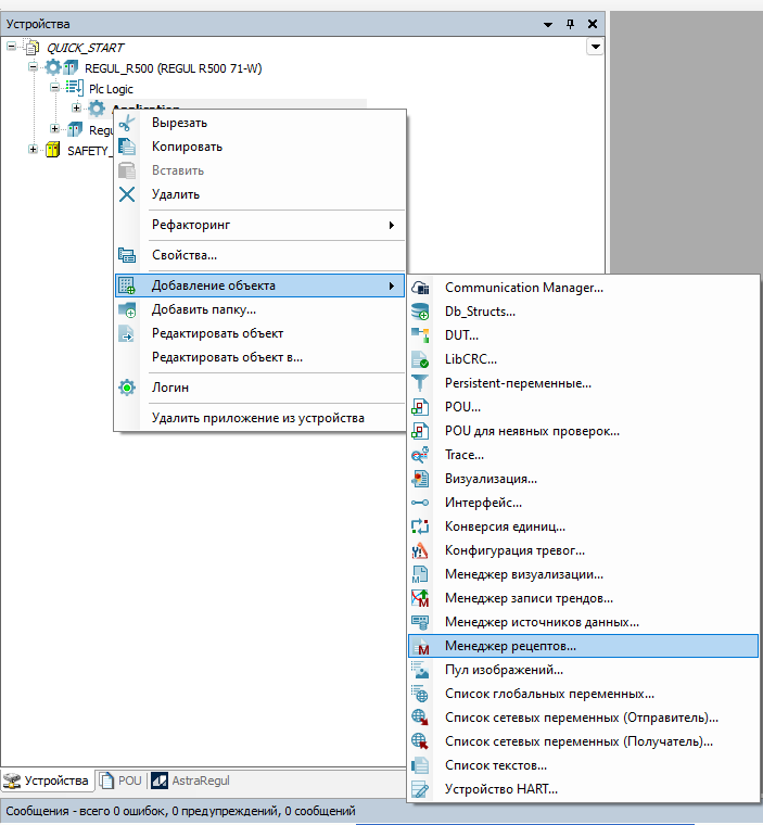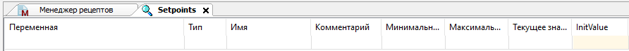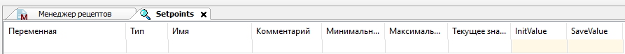 Рассмотрим процесс реализации механизма уставок через менеджер рецептов. Необходимо реализовать следующие шаги: