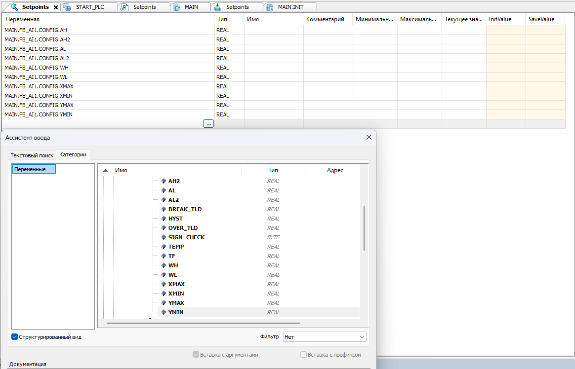 7. Добавить в проект программу «Setpoints», в которой будет происходить работа с рецептами.