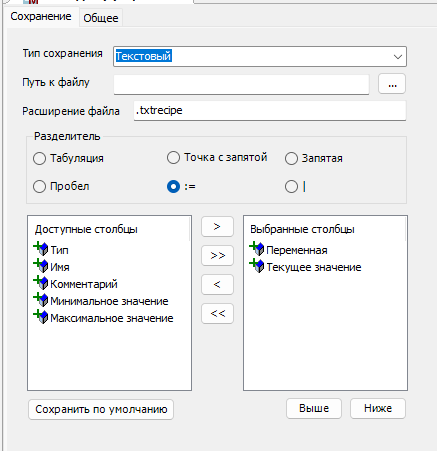 10. Далее в рецепте необходимо указать все значения переменных для сохранения. Можно вручную прописать путь для переменной в поле «Переменная», а можно через ассистент ввода найти нужную вам переменную.