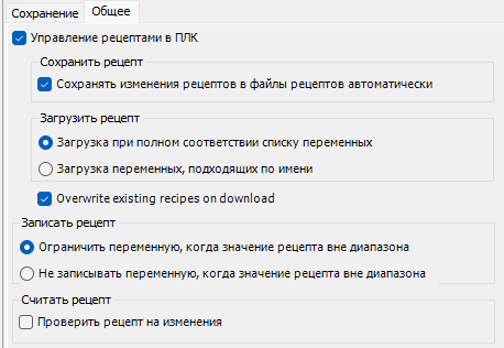 4.4.1.2.5. Реализация уставок через механизм рецептов