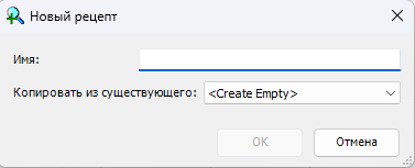 2. Открыть Менеджер рецептов и задать следующие настройки.