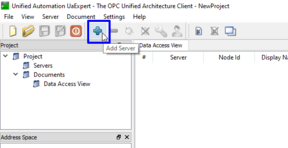 Откройте программу UaExpert и вы панели инструментов нажмите кнопку "Add Server".