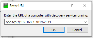 3. В открывшемся окне введите IP-адрес сервера и укажите порт UA сервера. Нажмите кнопку "ОК".