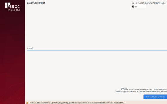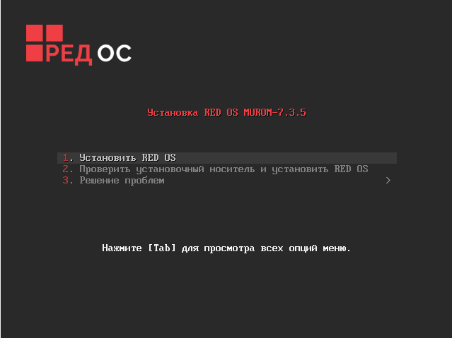 1. После запуска ПК откроется менеджер установки РЕД ОС версии 7.3.5. Выберите "Установить RED OS" и нажмите клавишу "Enter".