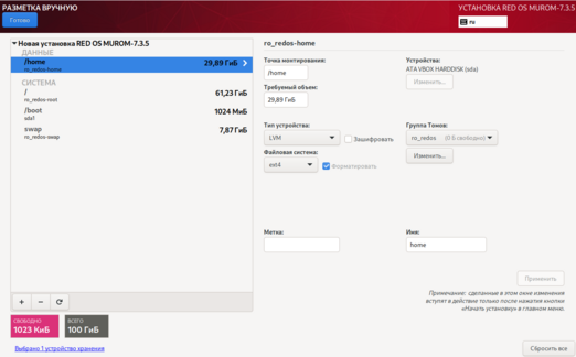Дополнительную информацию по разметке дисков в РЕД ОС можете найти на официальном сайте "РЕД СОФТ" в разделе "База знаний".