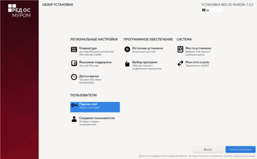 8. В окне "Обзор установки" в разделе "Пользователи" выберите "Пароль root".