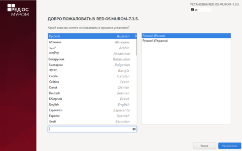 2. Выберите язык, который необходимо использовать в процессе установки и нажмите кнопку "Продолжить".