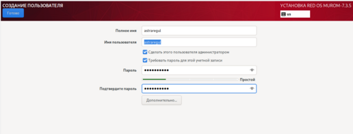 10. В окне "Обзор установки" в разделе "Пользователи" выберите "Создание пользователя".