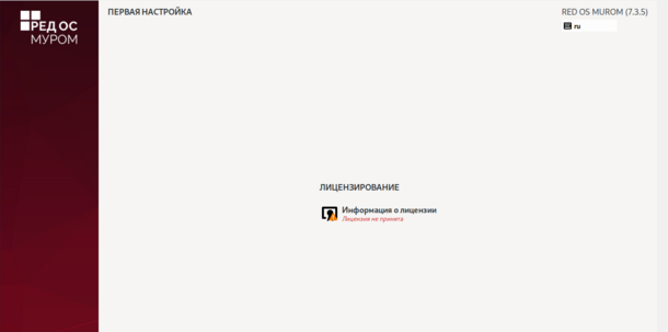 14. После запуска ПК в окне "Первая настройка" в разделе "Лицензирование" выберите "Информация о лицензии".
