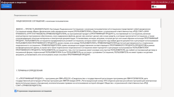 15. Прочитайте лицензионное соглашение. Установите флаг "Я принимаю лицензионное соглашение" и нажмите кнопку "Готово".