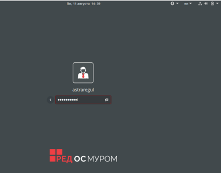 17. После загрузки операционной системы в окне авторизации введите пароль созданной учетной записи и нажмите клавишу "Enter".