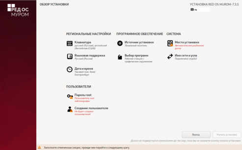 12. В окне "Обзор установки" нажмите кнопку "Начать установку". Ожидайте окончание данного процесса.