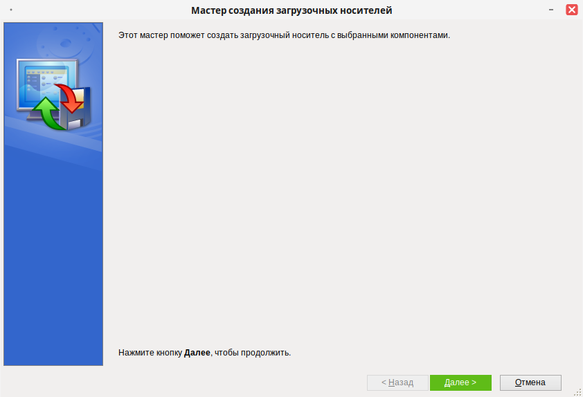 1. Запустите мастер создания загрузочных носителей на сервере управления, выполнив команду от суперпользователя:
