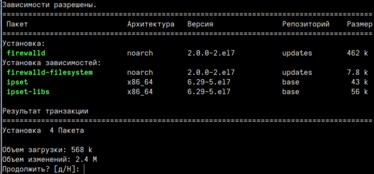 Для установки и запуска демона брандмауэра firewalld выполните следующие действия: