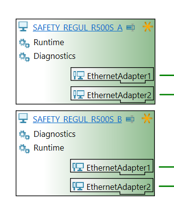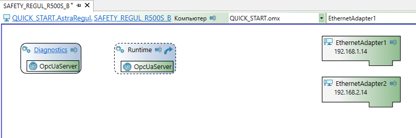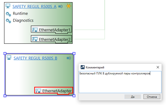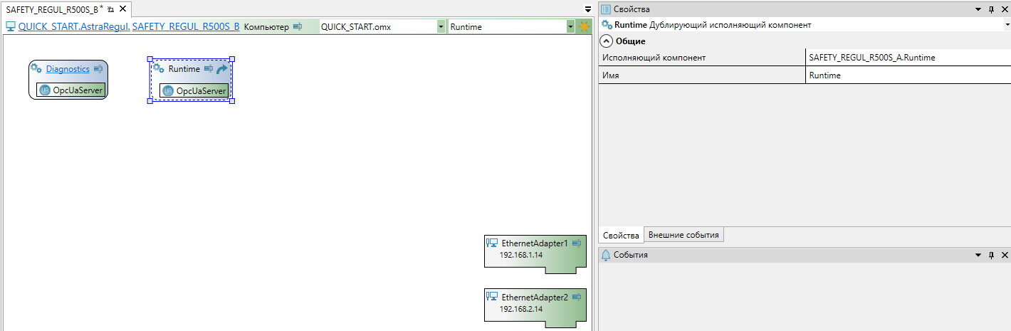 Резервный ПЛК SAFETY REGUL R500S с дублирующим исполняющим компонентом "Runtime" добавляется в топологию автоматически при выполнении экспорта проекта в Astra.IDE.