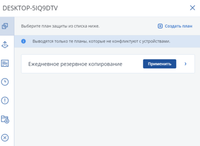 2. В открывшейся панели выберите созданный план резервирования и нажмите кнопку "Применить".