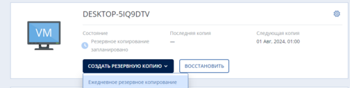 3. У компьютера изменится состояние резервирования. Также отображается время и дата следующего резервного копирования по созданному плану.