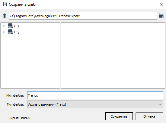 Можно сохранить в файл срез изменений сигналов, добавленных на трендовое поле, за период, равный отображаемому интервалу.