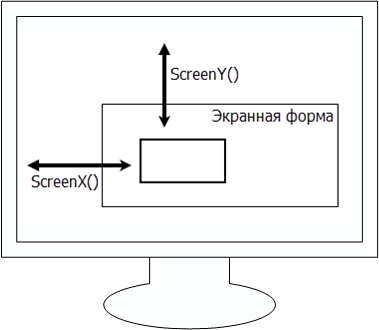Получение оконной координаты X. Координаты измеряются в пикселях.