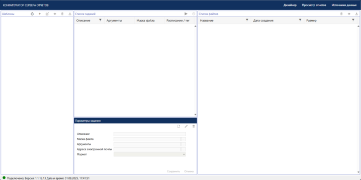 Скопируйте ссылку со строкой авторизации и вставьте её в адресную строку браузера. Откроется окно "Конфигуратор сервера отчетов".