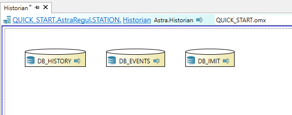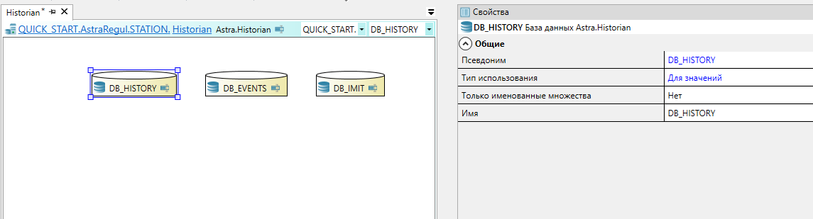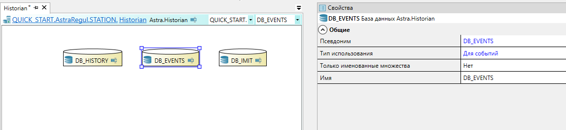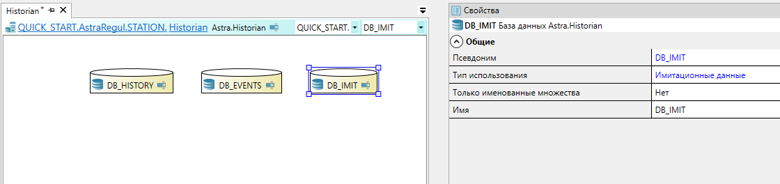 Перейдите в компонент "Historian" и перетащите и из Панели элементов два дополнительных элемента "База данных Astra.Historian".