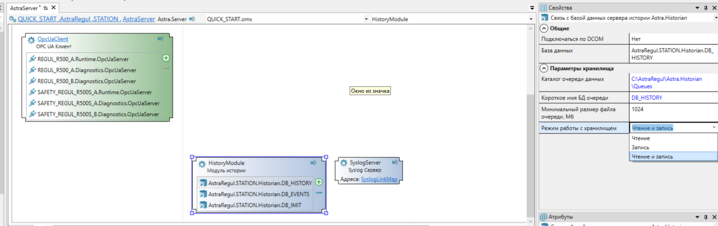 Компонент "Astra.Historian" для инженерной станции добавляется и настраивается автоматически при выполнении экспорта проекта в Astra.IDE.