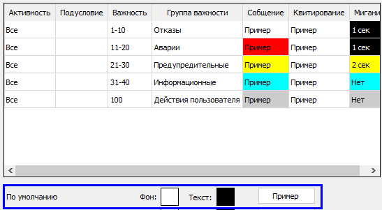 4.5.2.1.1.1.2.1. Настройка групп важности и цветовой сигнализации