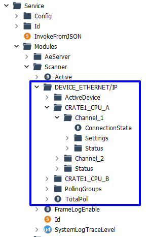 Модуль EtherNet/IP Scanner динамически создаёт служебные сигналы:
