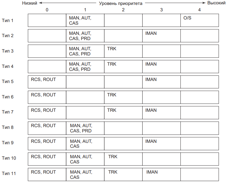 Переход в режим резервирования компьютера (Тип 8). При нарушении связи с супервизорной системой в режиме RCAS или ROUT осуществляется переход к смешанному режиму блока, например, к режиму резервирования компьютера (MAN, AUT или CAS). Комбинация с режимом PRD [PRD (RCAS) и PRD (ROUT)] – есть смешанный режим, отражающий лишь промежуточное состояние перехода (промежуточный режим перехода) во время перехода между режимами блока.