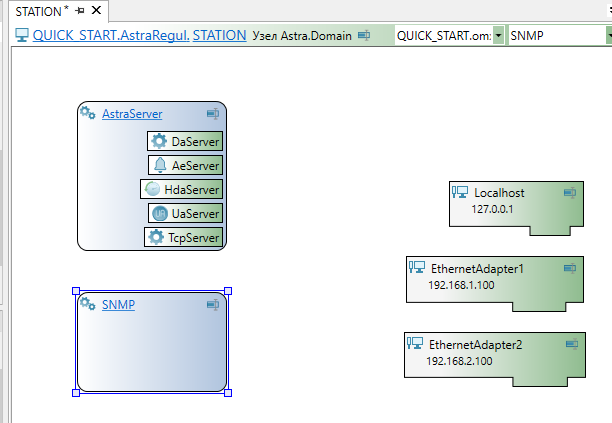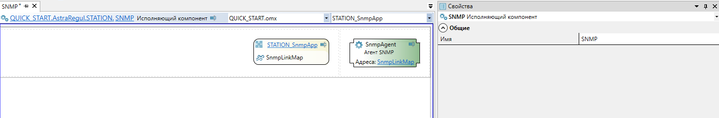 Исполняющий компонент "SNMP" для инженерной станции вместе с приложением "STATION_SnmpApp", компонентом "SnmpAgent" и "Карта адресов SNMP" добавляется автоматически при выполнении экспорта проекта в Astra.IDE.