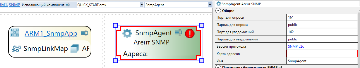 8. Перейдите в Приложение исполняющего компонента SNMP. У объекта "Карта адресов SNMP" укажите созданный файл.