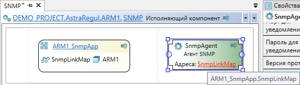 9. Перейдите в исполняющий компонент SNMP и перетащите из панели элементов в рабочую область элемент "Агент SNMP".