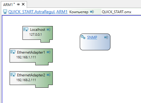 Для диагностики АРМ после экспорта проекта в Astra.IDE в топологию автоматически добавляется компонент "Компьютер" с компонентом "SNMP" .