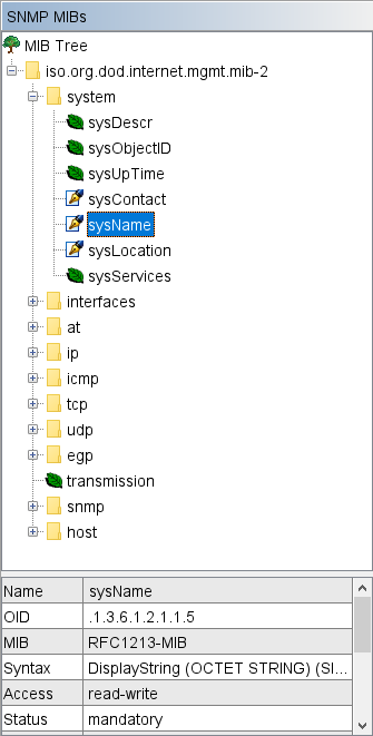 11. Запустите MIB Browser, в дереве перейдите к элементу "mib-2" (iso → org → dod → internet → mgmt → mib-2):