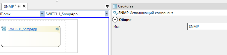 2. Перейдите в исполняющий компонент "SNMP" и перетащите в рабочую область из "Панели элементов" компонент "Приложение".