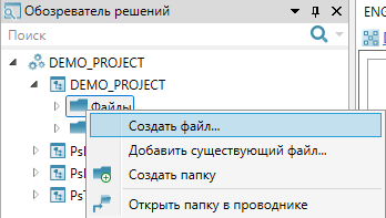 Выберите команду "Создать файл..." в контекстном меню объекта "Файлы" в Обозревателе решений.