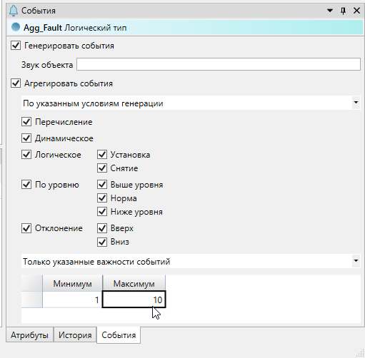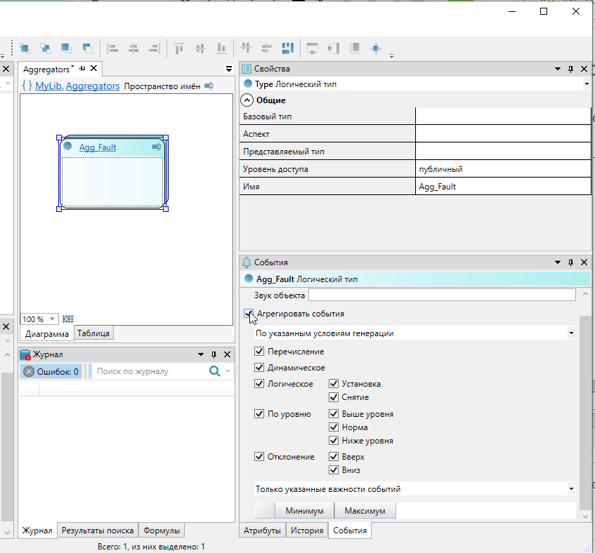 6. Выделите тип "Agg_Fault" и в окне "События" установите флаг "Агрегировать события".