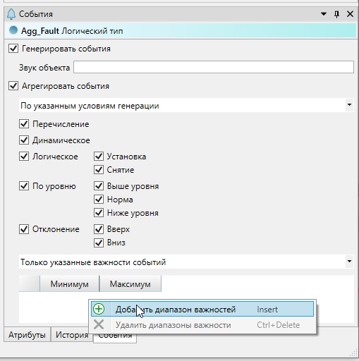 7. Чтобы добавить диапазон важностей для агрегации отказов, в контекстном меню таблицы выберите команду "Добавить диапазон важностей".