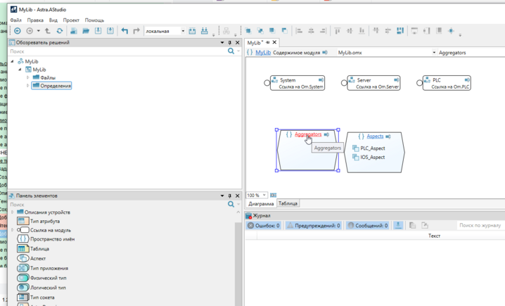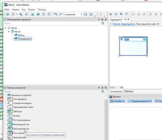 4. Добавьте в пространство имен "Aggregators" элемент "Логический тип" из панели элементов.