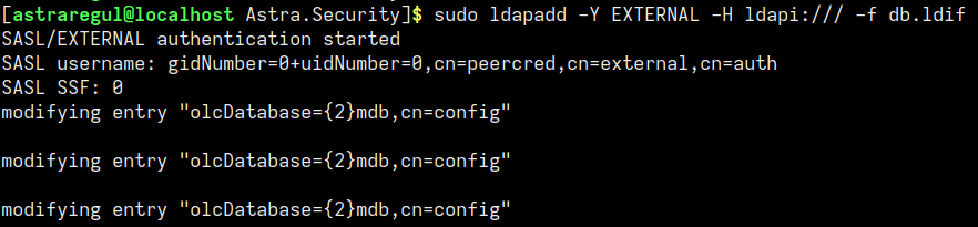 sudo ldapadd -Y EXTERNAL -H ldapi:/// -f db.ldif