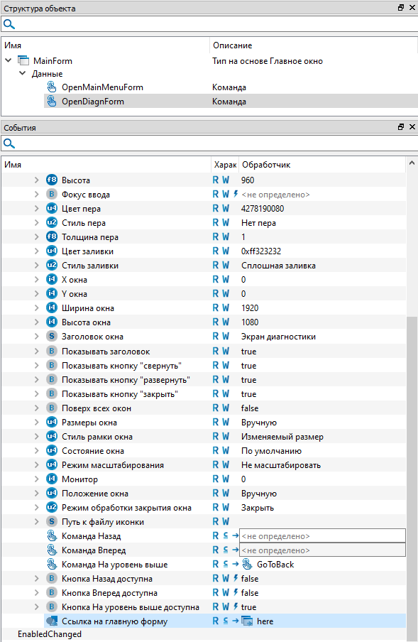 8. Раскройте обработчик и задайте в свойстве "Ссылка на главную форму" значение "here.refMainForm".