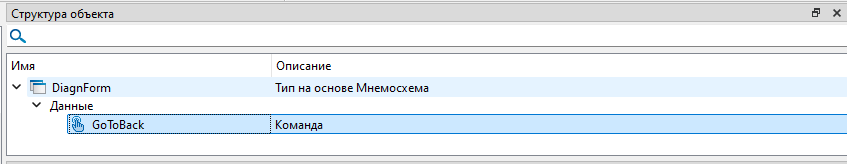 5. Добавьте на экранную форму "DiagnForm" элемент "Команда" из вкладки "Встроенные" панели элементов. Назовите команду "GoToBack".