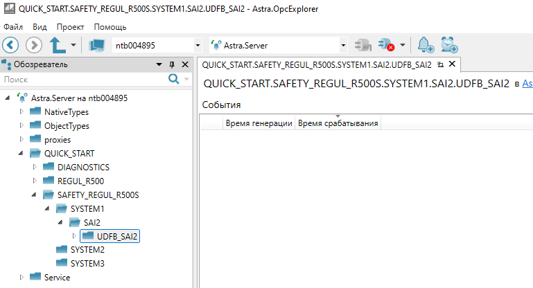 Полный путь до объекта можно посмотреть в утилите OpcExplorer: "QUICK_START" → "SAFETY_REGUL_R500S" → "SYSTEM1" → "SAI2" → "UDFB_SAI2".