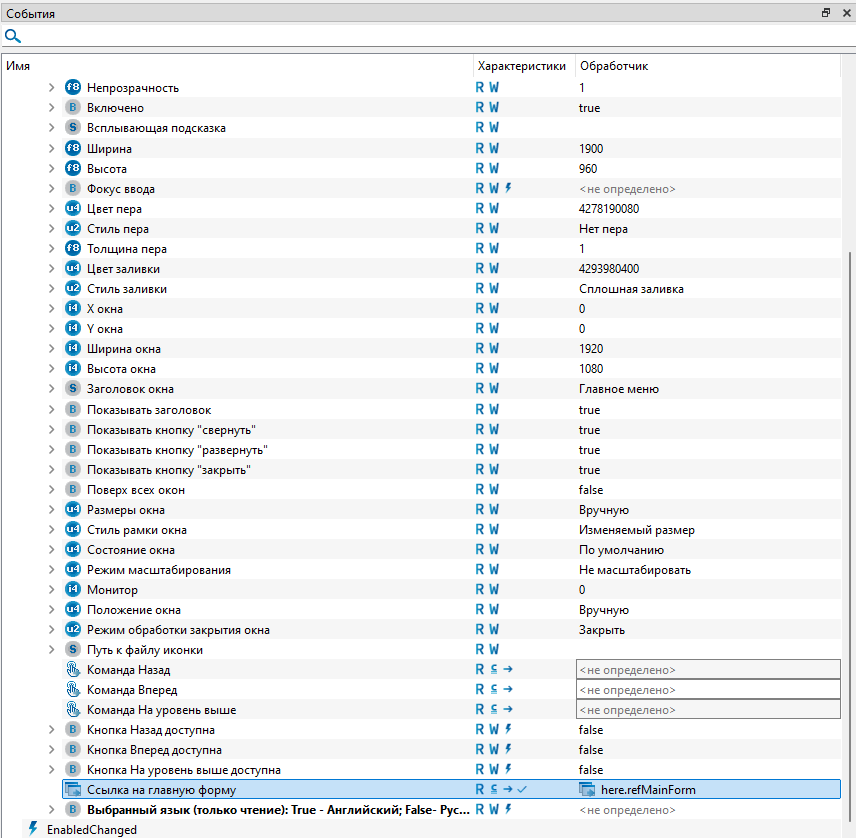 14. Раскройте обработчик и задайте свойству "Cсылка на главную форму" значение "here.refMainForm".