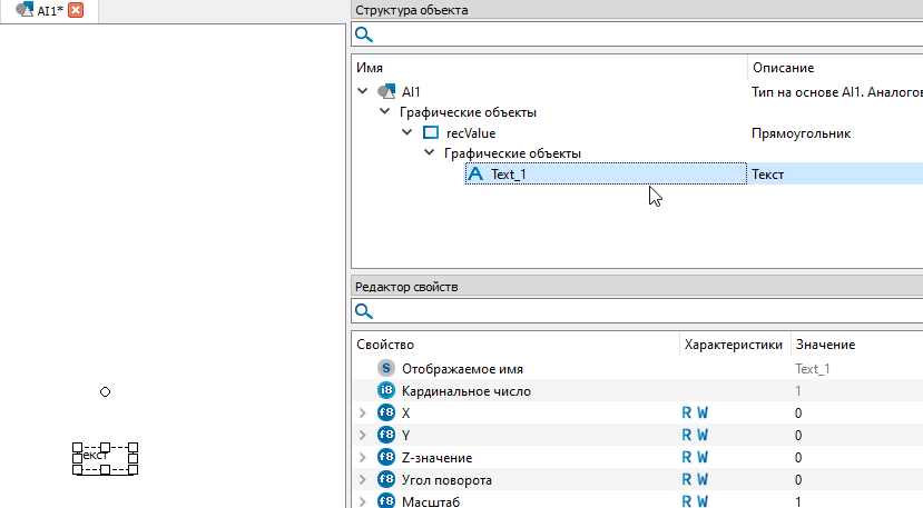 4. Перейдите в тип "AI1" двойным кликом левой кнопки мыши. В окне справа отобразится структура объекта.