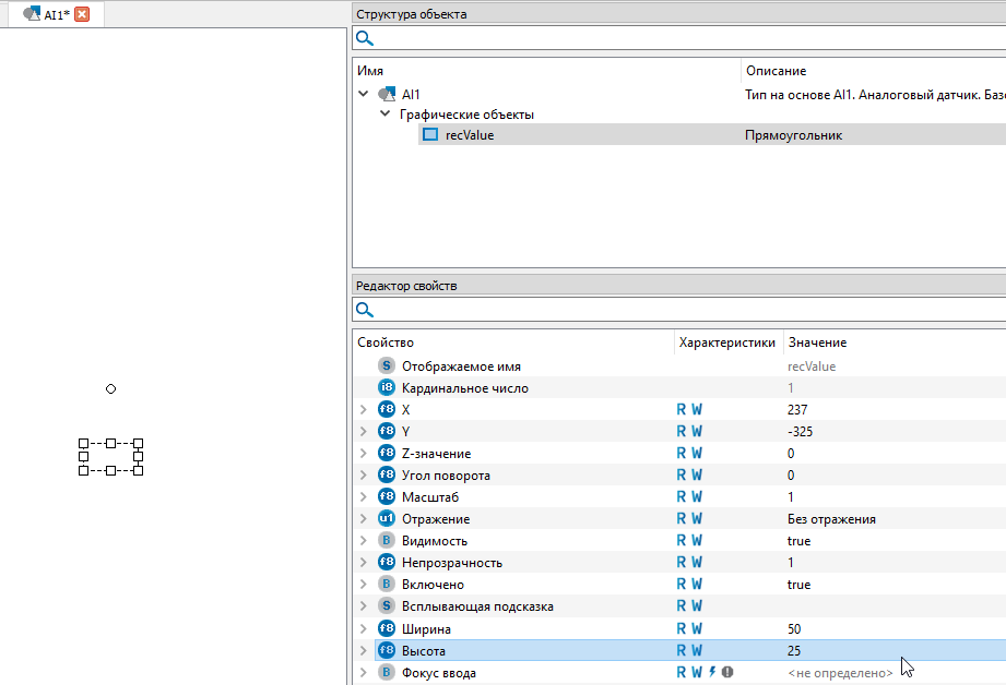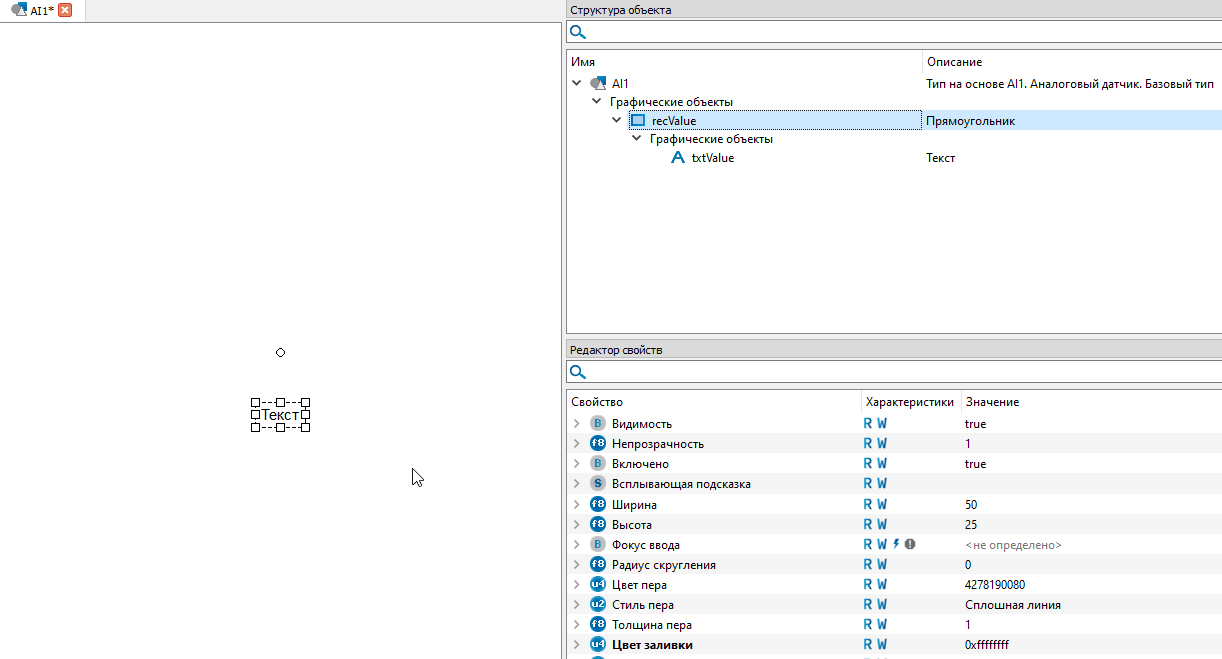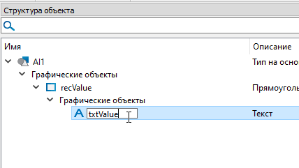 7. Выделите графический объект "Rectangle_1" левой кнопкой мыши и переименуйте его в "recValue", воспользовавшись клавишей "F2".